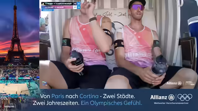 02:27:56Der zweite Satz beginnt mit einer schnellen Führung für Ehlers/Wickler, die durch einen starken Aufschlag von Clemens zustande kommt. Es folgt eine Diskussion über ein potenzielles Challenge (Videoüberprüfung), das von Clemens kritisch gesehen wird. Die Kommentatoren betonen die mentale Stärke der Favoriten, die nach einer Auszeit ihre Konzentration bündeln. Parallel dazu werden erste Planungen für ein Skyball getroffen, das als besondere Showeinlage dienen soll.
