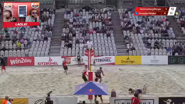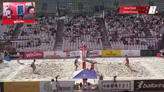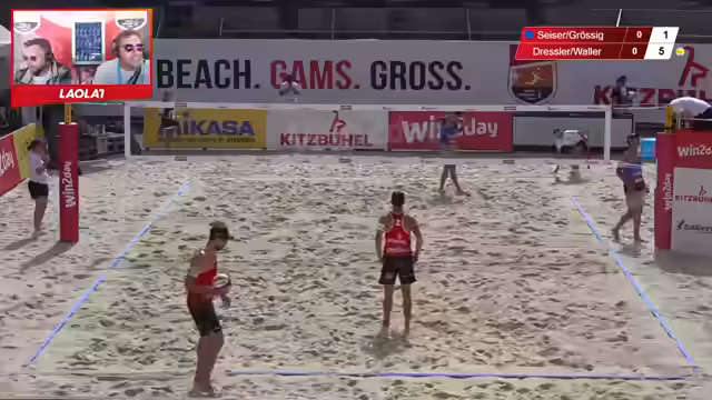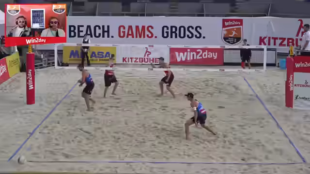 02:48:18Das Live-Stream von den Austrian Beach Volleyball Championships beginnt mit dem Kommentator, der die Atmosphäre beschreibt und sich über die Vorlieben des Chats lustig macht. Es folgt die Vorstellung der beiden Schiedsrichterinnen, Andy Lippe und Verena Röcker, sowie der Teams. Für Team Blau spielen Matthias Seiser, der unbedingt ins Finale will, und der sehr starke Lorenz Krössig. Für Team Rot stehen sich Chris Dressler, einer der besten Blockspieler Österreichs, und Philipp Waller gegenüber, der als Mr. Bock bezeichnet wird. Es wird eine spannungsgeladene Rivalie zwischen Seiser und Waller erwähnt, die auch Ex-WG-Kollegen sind.