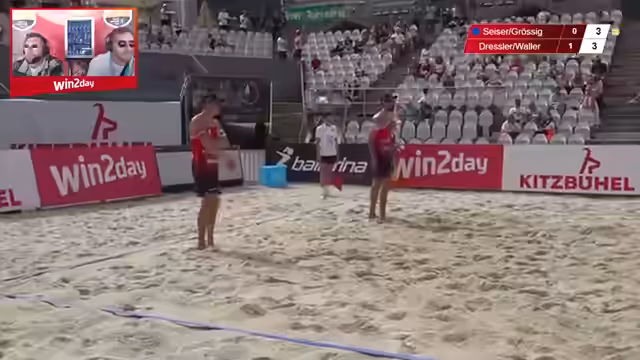 06:53:42In einem hochkarätigen Spiel während der Austrian Beach Volleyball Championships treten Bernhard Kurzmann (Vater) mit Benedikt Happelgrad gegen seinen Sohn Jakob Lars Kurzmann und Nikita Katschenko an. Das Spiel wird live aus Kitzbühl übertragen und zeigt spannende Rallies und technisch ausgefeilte Aktionen. Die Dynamik zwischen Vater und Sohn wird mehrfach thematisiert, insbesondere die Frage, warum sie nicht zusammen spielen, wobei Konfliktpotenzial in Familienbeziehungen im Sport angesprochen wird. Der Streamer betont das außergewöhnliche Niveau des Spiels, das sich mit nationalen Meisterschaften messen kann.