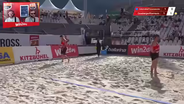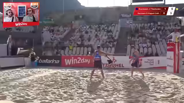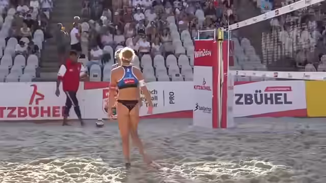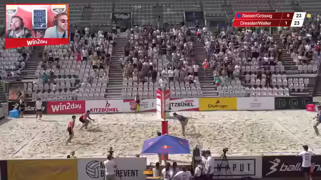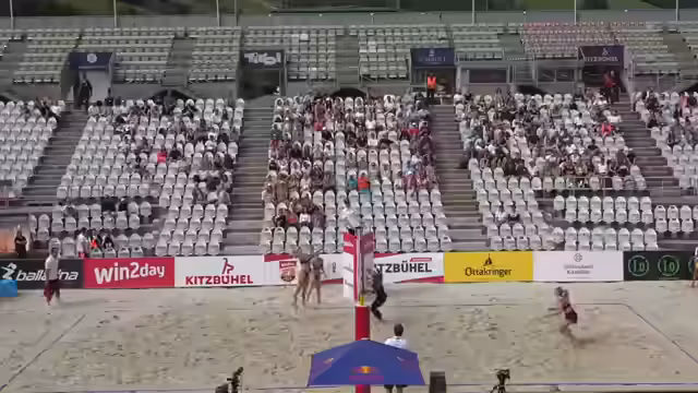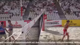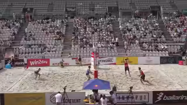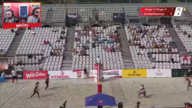 08:16:10Das Damenfinale zwischen den Klinger Sisters und Hohenauer/Berger verläuft auf extrem hohem Niveau. Das Spiel ist auf Augenhöhe, mit dramatischen Aktionen und technisch hochwertigen Ballwechseln. Die Klinger Sisters zeigen, warum sie als Favoritinnen galten, und erzwingen den Matchball bei 20:25. Der Druck, den sie aufbauen, ist immens, während Hohenauer/Berger in entscheidenden Momenten mit leichten Ungenauigkeiten zu kämpfen scheinen. Der Publikumslärm ist jedoch gewaltig und hebt die Atmosphäre auf ein Fest.