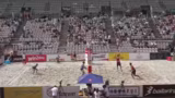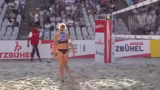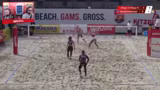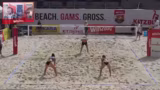 04:11:49Der erste Satz des Damen-Bronze-Spiels verlief äußerst spannend und umkämpft. Team Rot mit Rabic und Wiesmeyer zeigte starke Verteidigungsleistungen und kämpfte sich zurück, als es 7-9 gegen Team Blau mit Brejlovic und Dreilowitsch stand. Insbesondere Steffi Wiesmeyer war mit spektakulären Abwehraktionen und präzisen Line-Shots maßgeblich am Aufholjagd beteiligt. Trotz intensiver Bemühungen und einer kontinuierlichen Steigerung ihrer Leistung konnte Team Blau den ersten Satz am Ende knapp mit 21-17 für sich entscheiden. Das Spiel zeigte von Beginn an ein hohes Niveau mit vielen langen Ballwechseln und knappem Zusammenspiel auf beiden Seiten.
