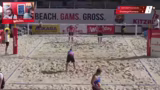 09:09:14Team Blau, angeführt vom nun sehr stark spielenden Phil Waller, startet in den zweiten Satz deutlich konziser als im ersten. Er dominiert das Aufspiel und kann fast ungestört agieren. Es entwickelt sich ein dramatischer Schlagabtausch mit wechselnder Führung. Beim Stand von 16:16 für Team Blau erreicht das Spiel seine Crescendo, das gesamte Stadion ist bei dieser Qualität des Beachvolleyballs. Das Momentum schlägt endgültig zu Gunsten von Team Blau.