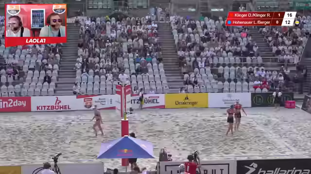 08:16:10Im Halbfinale der Austrian Beach Volleyball Championships treffen die Klinger Sisters (Dorina und Ronja Klinger) auf das Team Lili Hohenauer und Lia Berger. Das Spiel ist von Anfang an auf Augenhöhe, mit intensiven Rallyes und starken Angriffen von beiden Seiten. Die Klinger Sisters zeigen ihre Stärken im Block und im Angriff, während Hohenauer und Berger mit präzisen Linienangriffen und guter Verteidigung kontern. In der Schlussphase des ersten Satzes nutzt Team Rot den Druck der Klinger Sisters und gewinnt deutlich. Der zweite Satz bleibt ebenso eng, doch die Klinger Sisters setzen ihre Erfahrung durch und erreichen mit einem klaren Ergebnis das Finale. Die Spielerinnen demonstrieren Weltniveau, und das Publikum in Kitzbühel ist begeistert von der hochkarätigen Vorstellung.