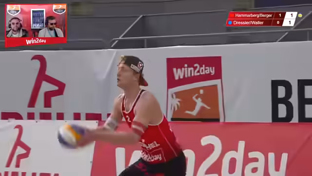 08:49:38Im Grand Final der Herren treten Tim Berger und Timo Hammerberg (Team Rot) gegen Chris Dressler und Phil Waller (Team Blau) an. Der erste Satz beginnt mit Nervosität auf beiden Seiten, doch Team Rot übernimmt schnell die Kontrolle durch starken Servicedruck und defensive Sicherheit. Tim Berger und Timo Hammerberg profitieren von ihren Signature-Moves, wie Hammerbergs Schulterangriffe, und gewinnen den Satz klar. Im zweiten Satz steigert sich Dressler, doch Team Rot bleibt konsequent und nutzt jede Chance, um Punkte zu sammeln. Ein entscheidender Block von Hammerberg und Berger entscheidet den Satz, sodass sie mit 2:0 Sätzen die Staatsmeisterschaft gewinnen. Die Leistung beider Teams ist herausragend, mit internationalen Spielniveau.
