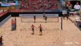 03:37:02Anna-Lena Grüne und Sandra Ittlinger starten ins Spiel wie ein Gebrüll und gehen sofort in Führung. Ihr Spiel ist überlegen, mit starken Blocks und einer fast perfekten Abwehr durch Grüne. Tine Auenbrock und Leo Klinke haben demgegenüber große Probleme mit den Netzübergriffen und Annahmen und können kaum Punkte machen. Eine Fehlchallenge verschlimmert die Situation weiter und führt zu einem klaren Satzgewinn für das favorisierte Team.