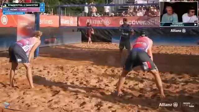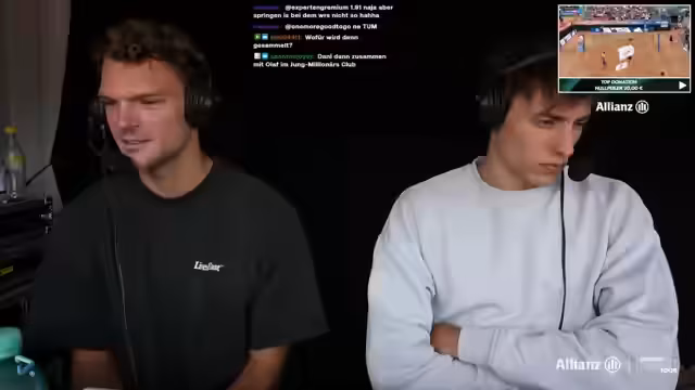 04:29:38Die Kommentatoren stellten die Spieler des anstehenden Spieles vor. Auf der einen Seite standen Vater und Sohn, Lorenz und Thilo Ritschel, zwei Abwehrspieler. Auf der anderen Seite standen Trainer und Spieler: Head Coach Benni Sargstetter mit seinen Spielern Erik Staddy und Hannes Nissen. Besonders interessant war die Rückkehr von TikTok-Jan, einem ehemaligen Beach-Liga-Star, der inzwischen ein erfahrener Beachvolleyballer ist und im Mainzer Raum coacht. Dies sorgte für Nostalgie und 'OG-Zeiten' im Chat.