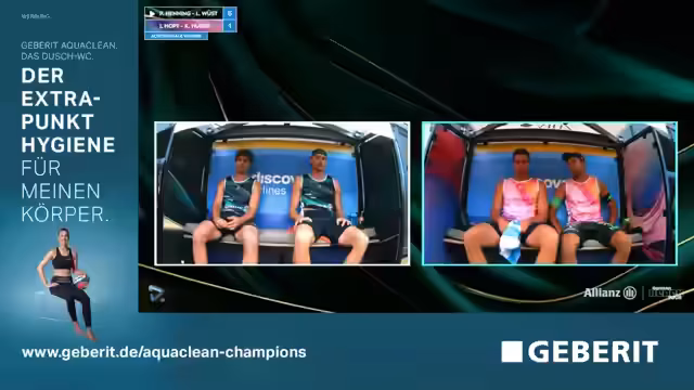 06:03:43Das Spiel zwischen Luis/Robin und David/Bennett verläuft ausgeglichen und spannend, mit mehreren Breaks und Führungswechseln. Kommentatoren bezeichnen das Spiel als 'richtiges Game' und 'Fight'. Luis Kubo wird für seine einzelnen, beeindruckenden Aktionen wie den 'geilen Ballwechsel' und die fantastische Abwehr gefeiert. Ein Fantasy-Update wird gegeben: Robin Sova und Tina Bütow haben Punkte gutgemacht, während Luis Kubo und David Bonnewatz ebenfalls im Plus sind.