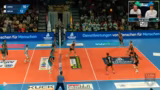 01:54:49Im vierten Satz zeigt Berlin weiterhin eine starke Leistung. Ivanov stabilisiert sein Zuspiel und Berlin gewinnt die langen Rallye durch konsequente Abwehr. Die Dürester Annahme bleibt problematisch und Berlin zieht auf 23-20 davon. Ein weiterer Netzfehler von Düren und ein Ass von Moritz Reichert besiegeln den 25-20 Sieg Berlins und damit den 3:1-Sieg im Match.