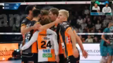 01:50:05Auch der dritte Satz verläuft äußerst knapp. Nach anfänglicher Berliner Führung kämpft sich Düren heran und erreicht 20-20. Trotz guter Defensive durch Ruben und stabile Zuspiele von Ivanov kann Düren die entscheidenden Punkte nicht für sich verbuchen. Berlin holt sich mit 25-22 den dritten Satz und geht mit 2:1 in Führung.
