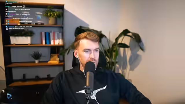00:08:23Der Streamer begrüßt den Chat am Samstagabend und testet das Soundsystem. Er kommuniziert über die aktuelle Musikauswahl und plant, eine EGVS Hip-Hop Playlist im Hintergrund zu aktivieren. Persönlich teilt er mit, dass er gestern seine Mitbewohnerin überraschend geheiratet hat. Dies halte er bisher geheim, selbst seine Mutter wisse es noch nicht. Er trägt einen Ring, der jedoch nicht perfekt passt, und erwähnt gesundheitliche Probleme mit seinem Handgelenk.