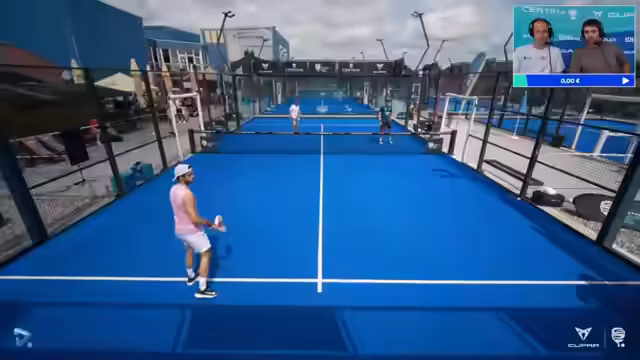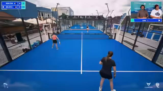 03:13:39Die Kommentatoren überlegen, ob Hintergrundmusik beim Padel-Spiel die Atmosphäre verbessern würde, ohne jedoch den Fokus vom Spiel zu nehmen. Das Spiel selbst von Renic/Sanz-Diaz gegen Paloma-Birich/García Ayub bleibt spannend und von Breaks geprägt. Luciana Renics Aggressivität und ihre gelegentliche Frust über Unentschlossenheit im eigenen Team werden thematisiert. Auch taktische Absprachen, wie die Aufteilung der Bälle im Team, werden kurz beleuchtet. Nach einem abgewehrten Break haben Renic/Sanz-Diaz nun mehrere Breakbälle.
