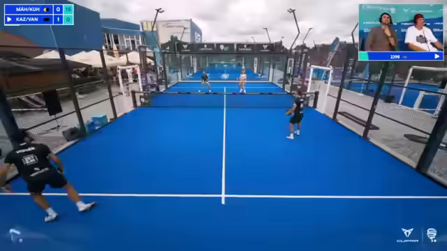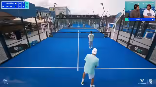 04:25:12Es startet ein historisches Mixed-Match zwischen Vincent Jülich, Tim Jäger und dem Duo Alejandro Walter, Sarah Granz, was in der German Paddle Tour so noch nie dagewesen ist. Parallel dazu läuft eine Wettaktion im Chat, bei der die Zuschauer darauf wetten, wie viele Smash-Bälle während des Spiels aus dem Feld fliegen.