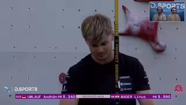 01:35:46Während des Finallaufs kam es zu einer Verwirrung über die genauen Wettkampfregeln. Eine Athletin stürzte, und war zunächst unklar, ob ein zweiter Lauf gestartet wird oder wie die Wertung erfolgt. Moderatoren und Kommentatoren gaben an, keine Experten im Klettern zu sein und sich daher auf die Informationen vor Ort zu verlassen. Diese Unsicherheit sorgte für Verwirrung im Chat. Ein deutsches Duell zwischen Ahodjan und Umlauf endete ultraknapp, zeigte aber den charakteristischen Ein-Lauf-Modus der Finalrunde, bei dem Fehler sofort zum Ausschluss führen.