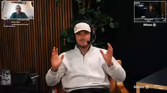 00:07:50Der Stream beginnt mit einer lockeren Begrüßung des Chats und dem Fokus auf den Beachvolleyball, nachdem eine Halle kurzzeitig im Spiel war. Nach einer kurzen Interaktion mit dem Chat, bei der die Stimmung auf einer Skala von 0 bis 10 abgefragt wird, blicken die Moderatoren auf den gerade vergangenen Stop in Düsseldorf zurück. Sie präsentieren als absolute Highlights den legendären Pötchen-Clips mit dem Trecker, dem Linienbus und dem Lastkran, sowie die vier leidgeprüften Düsseldorf-Fans, die jeden Tag mit dabei waren und extrem viel Bier konsumierten. Ein weiteres Highlight war der Auftritt von Clemens Wickler mit dem 'Skyball'-Schild, was für eine kontroverse Diskussion im Chat sorgte.