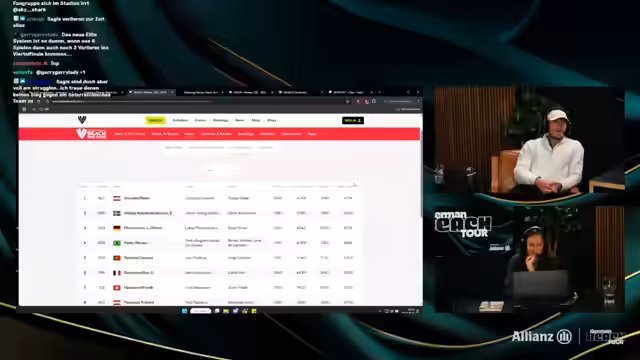 00:55:24Das Segment wechselt zum Thema Fantasy, wobei Thilo als Experte fungiert. Aufgrund des schwächer besetzten Teilnehmerfelds durch Ostrava wird das Budget für die Fantasy-Woche in Hamburg auf 140 Coins reduziert. Es gibt eine Diskussion, ob die Aufstellung der Teams vor oder nach der Qualifikation am Mittwoch erfolgen soll, wobei sich die Moderatoren für eine Lösung aussprechen, die maximale Flexibilität für die Fans bietet. Thilo erklärt, dass die Spielerliste für Hamburg noch nicht final in der App ist und er Updates bis Mittwochabend plant. Eine Umfrage im Chat klärt auf, wie viele Zuschauer wussten, dass Thilo auch aktiver Sportler ist, was für viele eine Überraschung ist.