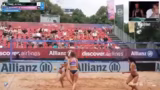09:08:13Nach anfänglicher Dominanz von Lorenz/Ritschel gelingt Kühlborn/Stadiseber das Comeback im ersten Satz. Das Spiel ist ausgeglichen und beide Teams kämpfen um jeden Punkt. Ein Kommentator hebt hervor, dass das Spiel in seiner Spannung den Anforderungen einer solchen Großveranstaltung mehr als gerecht wird. Trotz der gleichmäßigen Leistung wird die besondere Atmosphäre in München hervorgehoben.