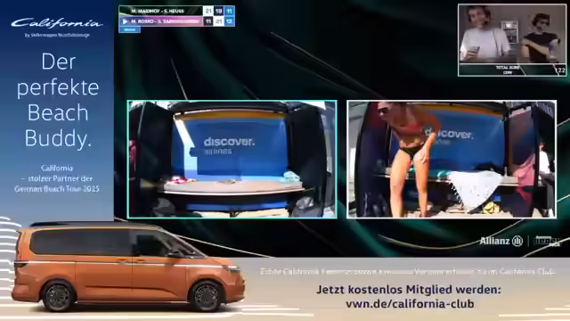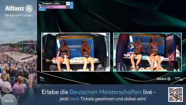 00:26:19Es wurde offiziell der Start der Qualifikationsrunden am Donnerstag angekündigt. Eine bemerkenswerte Premiere war das erste Zünden von Pyrotechnik an einem Donnerstag in der Geschichte der German Beach Tour. Die Hitze beeinträchtigte auch die Spieler, wovon manche physisch zu kollabieren drohten. Es wurde über eine sehr hitzebedingte Spielqualität gesprochen, die sowohl die Spieler als auch das Kommentatorenpaar stark forderte und zu einer hitzebedingten Pause führte.