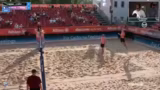 02:58:31Nach ihrem Sieg im Qualifikationsturnier führen die Kommentatoren ein Interview mit den Gewinnern Cedric und Exel. Die beiden berichten von ihrer kurzfristigen Zusammenarbeit, die durch eine Verletzung im Team notwendig wurde. Exel beschreibt seinen täglichen Ernährungsplan an heißen Turniertagen, der aus ausgiebigem Frühstück und leichten Snacks wie Hummus und Gebäck besteht. Cedric gibt Einblicke in sein Training, das sich primär auf zweimal wöchentliches Sandspiel konzentriert, und erläutert seine Trainingsphilosophie.