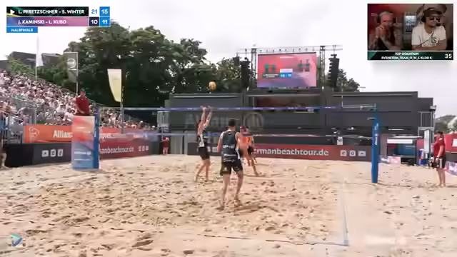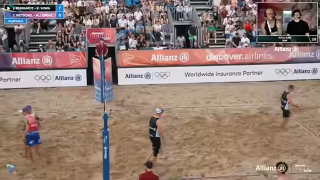 05:24:48Das Halbfinale zeigt ein ausgeglichenes Spiel mit entscheidenden Momenten. Mommelorenz profitiert von einem unglücklichen Blockkontakt des Gegners, während Thilo Ritschel bei der Annahme wackelt, jedoch sofort korrigiert. Trotz eines Break-Vorsprungs und starker Einzelleistungen wie Jonas Reiners erstem Sackerfolg, bleiben die Sätze knapp und ausgeglichen. Robin Sova hebt hervor, dass die Konzentration auf den eigenen Aufschlag und die Verteidigung entscheidend ist, auch wenn der Wind auf dem Court für zusätzliche Herausforderungen sorgt.