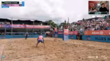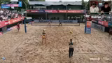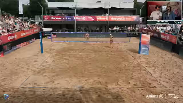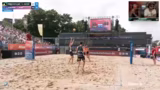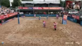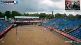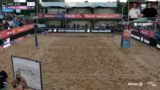 00:28:52Der Stream startet mit dem ersten Halbfinale der Damen zwischen den an Position 1 gesetzten Lea Kunz und Melanie Paul und dem Duo Tabea Schwarz und Lisa Sophie Kotzsch. Es ist eine Fortsetzung ihrer Rivalität nach dem verlorenen Halbfinale in Düsseldorf 2. Von Anfang an zeigt das favorisierte Duo Kunz/Paul eine starke Leistung, eine perfekte First-Ball-Side-Out-Quote und eine dominante Block- und Abwehrleistung. Der erste Satz geht deutlich an Kunz/Paul, während das Wetter leicht zu nieseln beginnt und einige Zuschauer die Tribüne mit Regenschutz verlassen.