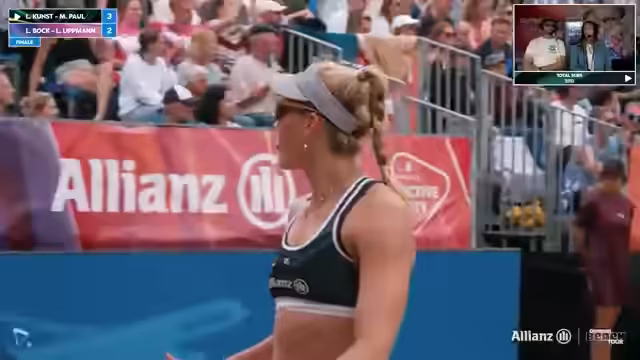 00:49:20Nachdem Lea Kunz und Melanie Paul den ersten Satz klar mit 21:13 für sich entschieden, gestaltet sich der zweite Satz etwas enger, dennoch bleibt die Favoritin im Spiel. Trotzdem bleibt das Geschehen unter Kontrolle und Kunz/Paul gewinnen auch den zweiten Satz mit 18:14 und sichern sich den souveränen Einzug ins Finale. Im Anschluss spricht der Streamer mit den Siegerinnen, die sich über ihre Leistung freuen und ein offizielles Vlog-Filmteam erwähnen, das für Content in der kommenden Woche sorgen wird. Sie sehen frisch und fit für das Finale.