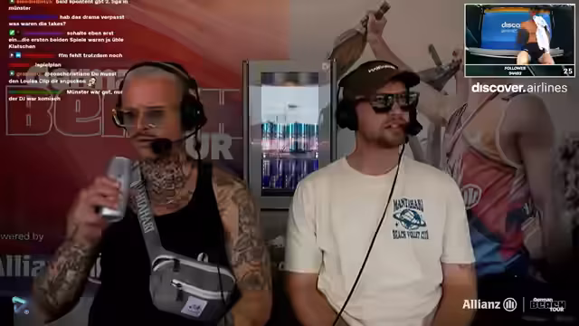 03:00:42Die Moderation gibt einen Überblick über die aktuellen Ergebnisse der German Beach Tour. Tarea Schwarz wird als Frontrunner für die Auszeichnung 'Most Improved Player' gelobt, da sie bei drei Turnieren immer unter den besten drei platziert war. Neben den sportlichen Ereignissen gibt es einen starken Fokus auf die Community-Interaktion. Ein Gewinnspiel mit Ahoi-Brause wird beworben, bei dem Zuschauer mit dem Command 'Ahoi' in den Chat schreiben und die Chance auf einen Gewinn haben. Die Moderation liest verschiedene Chatnachrichten vor, darunter Geburtstagsgrüße, Kritik an den Spielern und humorvolle Anekdoten aus der Community und zeigt dabei ein hohes Engagement mit den Zuschauern.