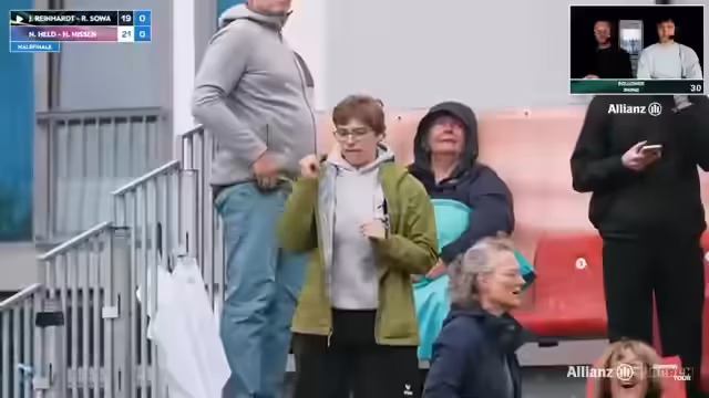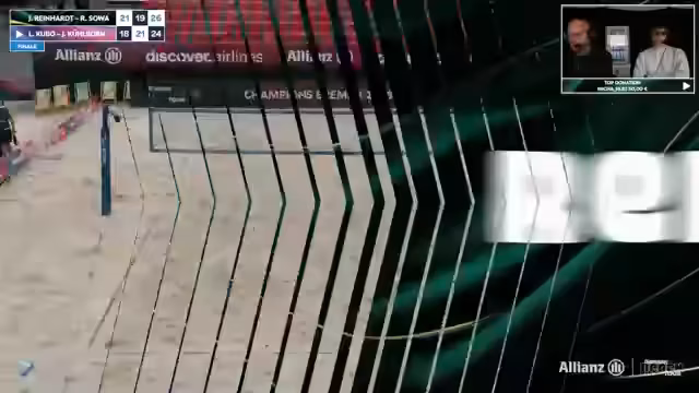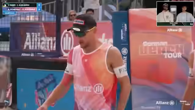 07:15:16Das Männerfinale zwischen Jonas Reinhardt/Robin Sova und Luis Kubo/Jannik Kühlborn beginnt. Kommentatoren stellen die Kontrahenten vor und heben die besondere Dynamik hervor. Kubo und Kühlborn agieren als Underdogs, während das Duo Sova/Reinhardt als Favorit gilt. Die ersten Ballwechsel sind lang und gechillt, enden aber nach einer langen Rallye. Die Umfrage zur Siegerfavoriten im Stream ist jedoch ausgefallen.