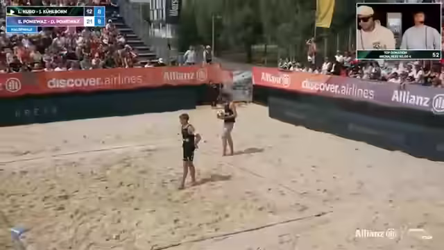 06:53:14Nach dem Frauenfinale wird der Court für das Männerfinale vorbereitet. Kommentatoren analysieren die Favoriten Jonas Reinhardt/Robin Sova, die nominell am stärksten eingeschätzt wurden. Gleichzeitig wird die überraschend starke Leistung von Luis Kubo/Jannik Kühlborn hervorgehoben, die im Halbfinale glänzten. Die Kommentatoren spekulieren über mögliche Storylines und zukünftige Teamkonstellationen, insbesondere für den Nachfolger von Kubo.