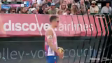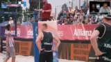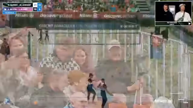 01:49:28Das Spiel verläuft äußerst dramatisch und umkämpft. Beutel/Klinke agieren als Underdogs und führen bereits mit 19:16. Leo Klinke macht eine fast perfekte Partie mit hohen Sideout-Quoten. Jedoch macht Barber/Gernat einen Break und dreht den Satz auf 21:19. Die Point-Endentscheidung ist extrem umstritten. Eine Challenge wird beantragt, der Ball wird zunächst als Touch gewertet, nach erneuter Überprüfung aber als Aus. Die Entscheidung wird als bitter empfunden und demoralisiert das Beutel/Klinke-Team nicht, obwohl sie eine starke Leistung gezeigt haben.