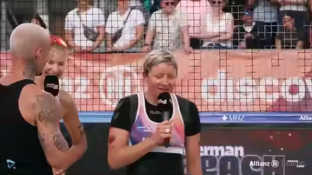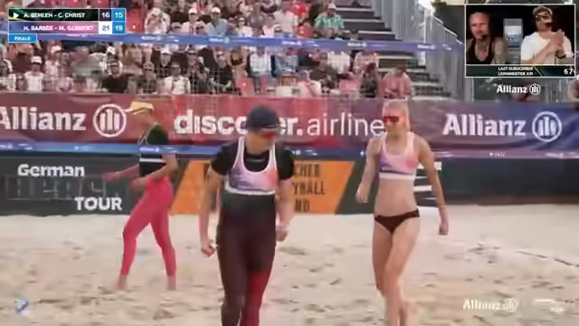 06:45:41Nach dem Sieg von Melodie Gernert und Nele Barber findet eine zufriedene Siegerehrung statt. Die Kommentatoren loben ihre starke Leistung als höchstverdient und eine fantastische Story, insbesondere für Gernert, die mit 38 Jahren wieder in der Prime ist und den Titel holt. Das Team wird zu einem Siegerfoto mit den Pokalen und dem Discover Airlines Gutschein aufgerufen. Die Begeisterung über den Turniererfolg ist groß.
