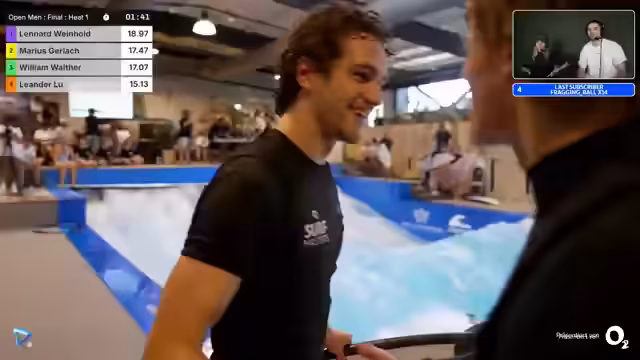 01:13:48Der Pool-Clash wurde als bedeutendes Highlight der Surf-Saison 2025 hervorgehoben, da er eine Abwechlung zu den üblichen stehenden Wellen-Wettkämpfen darstellte. Die Veranstaltung fand in einem großen Pool statt, wodurch ein neues Wettkampfformat entstand, das insbesondere für Surfer auf fließenden Wellen ungewohnt war. Beteiligte wie Lenny und Marius betonten den spaßorientierten Charakter, ohne starken Leistungsdruck. Sie äußerten sich positiv über die lockere Atmosphäre, die es ihnen ermöglichte, kreative Moves wie Chop-Ups und Carves auszuprobieren. Obwohl sie ursprünglich in einem Wettbewerbsmindset starteten, passten sie sich dem lustvollen Jam-Session-Format an, was zu humorvollen und unerwarteten Manövern führte. Das Event wurde als gelungenes Community-Erlebnis beschrieben, das neue Gesichter in der Szene präsentierte und durch zusätzliche Elemente wie Challenges und Essen bereichert wurde.