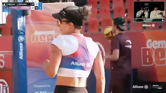 00:17:38Während eines Spiels von Luis Kubo und Manu Harms werden die Eintracht-Beachvolleyball-Stars Peter Wolf und Georg Kroschwitz im Chat erwähnt. Peter wird als „Goat“ bezeichnet und seine geplanten Auftritte für die Saison angekündigt. Gleichzeitig wird der neue offizielle Ball der Tour vorgestellt. Der Ball wird als spektakulärer beschrieben, da er sich durch Topspin besser spielen lässt, während Floats weniger effektiv sind. Athleten, die den Ball bereits getestet haben, bestätigen die positiven Veränderungen.