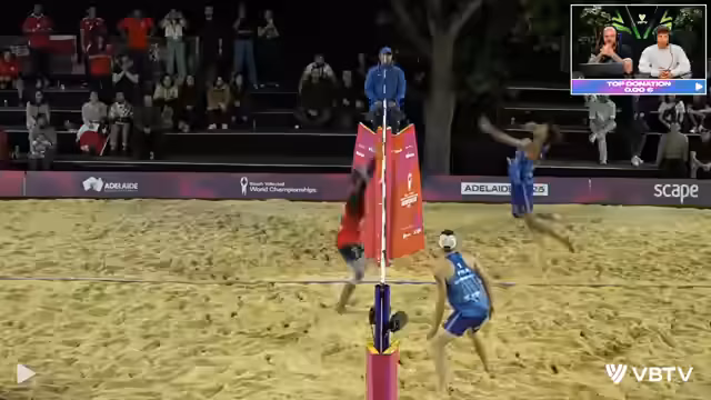 03:00:07Die Aufmerksamkeit verlagert sich auf das französische Team Bassero/Ayer. Der Kommentator stellt fest, dass Bassero, trotz seiner Größe von 1,95 Metern, sehr athletisch ist und gut springen kann. Er wird mit Alex Brauer verglichen, was durch die Ähnlichkeit im Körperbau und durch seine Größe begründet wird. Kelvin Ayer wird ebenfalls als sehr athletisch mit gutem Genpool beschrieben, was seine spektakulären Aktionen erklärt.