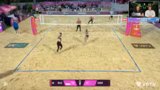 01:38:43Im dritten Satz beginnt sich der Spielverlauf langsam zu drehen. Melly und Lea zeigen erste Anzeichen einer Stabilisation. Lea in der Annahme und Melly im Angriff beginnen wieder Lösungen zu finden und selbstbewusster aufzutreten. Melly Paul setzt einige starke zweite Bälle und das deutsche Duo beginnt, das Momentum zu erlangen. Es entsteht ein Kopf-an-Kopf-Rennen, bei dem beide Teams um jeden Punkt kämpfen und sich der Spielstand auf 8:8 anpasst, was Spannung in das entscheidende Spiel bringt.