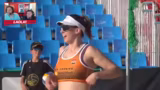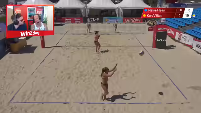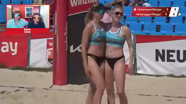 10:10:12Während des Spiels klagt Astrid Bauer über Kopfschmerzen und Kreislaufprobleme, wahrscheinlich bedingt durch die extreme Hitze. Trotzdem zeigt sie bemerkenswerten Kampfgeist und entscheidet sich, weiterzuspielen. Ihr Team, bestehend aus Bauer und Sophie Haselsteiner, demonstriert großen Willen und kämpft sich in ein Satzgleichgewicht. Sie feiern jeden gewonnenen Punkt und genießen den Moment, was ihnen Respekt im Chat einbringt.