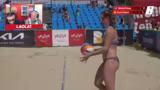03:00:31Die Kommentatoren leiten das nächste Damenspiel zwischen Sarah Neis/Isabel Haas (Österreich) und Stefania Flora-Kuhn/Lila Villam (Ungarn) ein. Das Team der Österreicherinnen, das erst sein erstes gemeinsames Turnier spielt, wird als Außenseiter angesehen. Gegnerisch wird die ungarische Spielerin Lila Villam aufgrund ihrer Größe von 1,84 Meter als besonderes herausfordernd für das österreichische Team beschrieben, insbesondere bei den Annahmen.