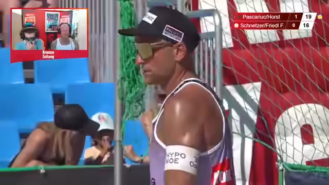 05:46:45Das Spiel zwischen Horst/Pascariuk und Friedl/Schnetzer beginnt. Die Kommentatoren analysieren die Dynamik im Feld und die unterschiedlichen Spielstile. Sie heben insbesondere die beeindruckende Athletik und den spektakulären Anlauf von Florian Schnetzer hervor. Gleichzeitig geben sie Hintergrundinformationen zu den Spielern, wie zum Beispiel Alex Horst' legendäre Karriere und seine Partnerwechsel nach Verletzungen seines vorherigen Partners.