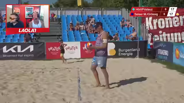 01:56:34Der Streamer interaktiv mit dem Chat und fordert die Zuschauer auf, ihre Vorhersagen für das Spiel abzugeben, indem sie für Team Türkis (Eins), Team Orange (Zwei) oder neutral (Drei) votieren. Nachdem der Chat neutral votiert, wird der Fokus auf die persönliche Geschichte von Moritz Priestarts gelegt. Dieser hatte eine schwere Knieverletzung und war erst seit März wieder im Sand. Trotzdem ist er einer der am meisten unterschätzten Spieler.