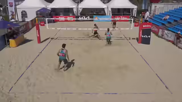 09:37:06Team Mascherbauer-Saric geht in Führung, doch die Abwehr des Gegnerteams wird immer stärker. Sie verteidigen fast jeden Ball und nutzen die Körpergröße zu ihrem Vorteil. Insbesondere Sophie Haselsteiner überzeugt mit phänomenalen Abwehrleistungen. Die Ungenauigkeiten im Service von Mascherbauer-Saric werden vom Gegner bestraft, was diesen den entscheidenden Vorteil verschafft und den Spielverlauf dreht.