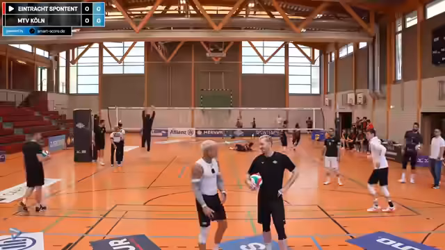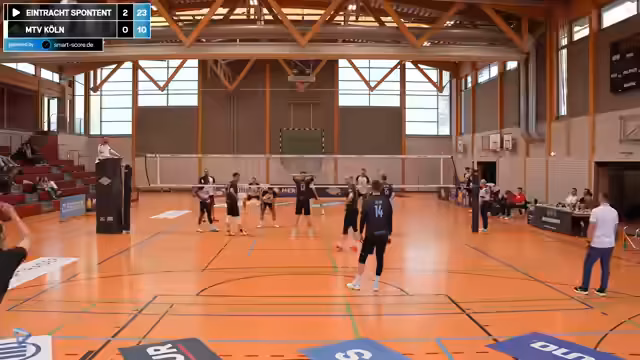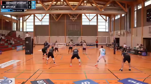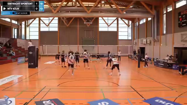 01:00:29Im zweiten Satz zeigt die Konzentration nachzulassen. Der Gegner wirkt demotiviert und macht ebenso viele Fehler. Dies gibt der Eintracht Spontent die Möglichkeit, den Druck zu erhöhen und durch konsequentes Aufschlagen und solide Abwehr in Führung zu gehen. Die Annahme ist immer noch ein störender Faktor, aber der Wille, den Satz zu drehen, wird spürbar.