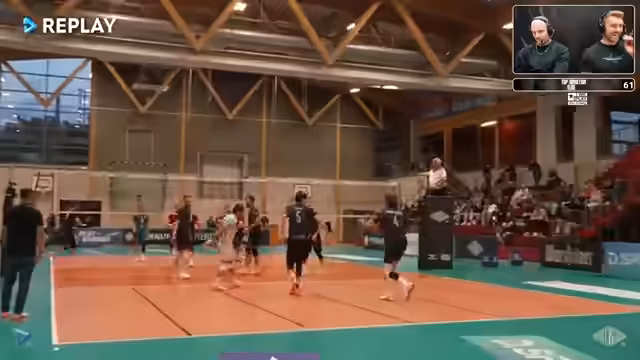01:01:01Während des laufenden Spiels werden spezifische Spielzüge und Taktiken besprochen. Die Bewegungen der Spieler, wie der Wechsel von Robert und Leon in der Diagonalen, werden kritisch beobachtet. Der Trainer wird für seine Entscheidungen, wie die Auszeit bei einem Aufschlag von Czapelinski, zur Rechenschaft gezogen. Auch die Passqualität von Thomas und die notwenige Aggressivität im Angriff werden diskutiert.