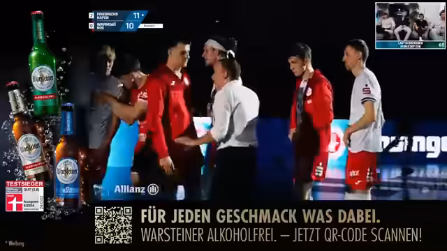03:01:19Der Streamer stellt die anwesenden Volleyball-Experten vor, darunter Dirk und Arne Tegen. Es wird die Vorfreude auf das bevorstehende Spiel zwischen Friedrichshafen und Warnemünde ausgedrückt, wobei betont wird, dass auch die Zuschauer das Spiel live sehen werden. Die Stimmung ist informell und freundschaftlich, mit Anekdoten über frühere Spiele und die Bereitschaft, gemeinsam die Show zu machen. Die technischen Voraussetzungen für die Live-Übertragung werden kurz besprochen.