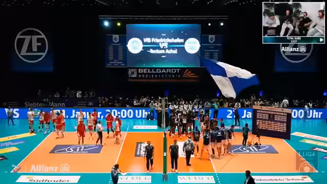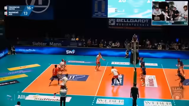 03:06:35Der Stream endet nicht mit dem Spiel, sondern leitet nahtlos zum nächsten Übertragungsevent über. Die Moderatoren kündigen an, das Spiel von Friedrichshafen gegen Warnemünde zu zeigen. Es entsteht eine Großgruppe mit geballter Volleyball-Expertise, und die Stimmung ist auf Hochtouren, da die Analyse des soeben gespielten Spiels und das bevorstehende Event diskutiert werden.