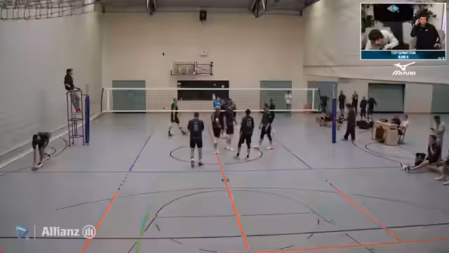 00:40:39Der erste Satz verläuft turbulent. Die Eintracht liegt nach anfänglichen Schwierlichen durch Breaks vorne. Es werden Wetten im Chat aktiviert: Wette auf den ersten Ballwechsel (Break oder Side-Out) und ein Duell zwischen Dirk und Finn um die persönlichen Punktequoten. Bärchen zeigt eine starke Leistung, während Dirk Schwierigkeiten hat, Punkte zu erzielen. Das Spiel von beiden Seiten ist geprägt von unkonstanten Annahmen und einigen Fehler.