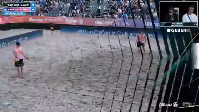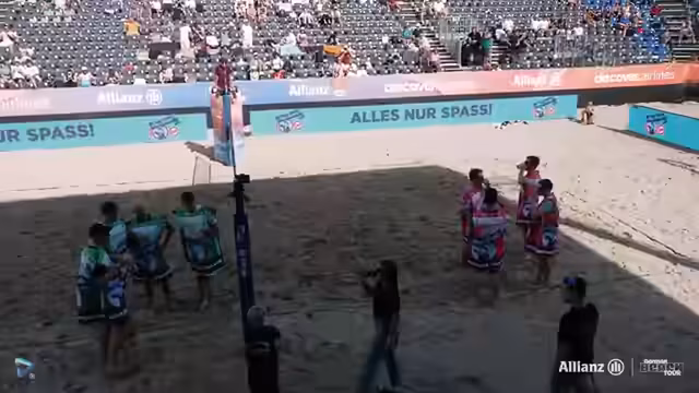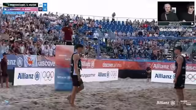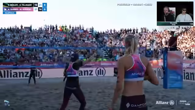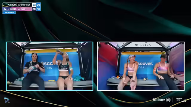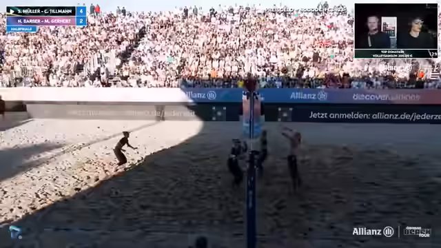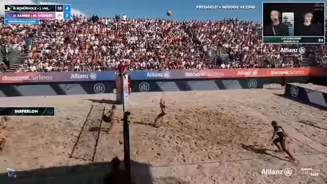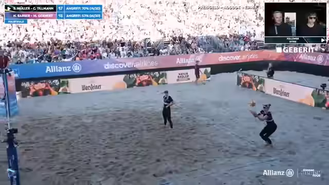 07:37:18Der Live-Stream beginnt mit der Vorstellung der Halbfinalpaarung zwischen den Top-Teams Sinja/Svenja und Barber/Gernhart. Die Kommentatoren heben die historische Dimension hervor und jagen den beiden Teams den Rekord für vier Titel in Folge. Schiedsrichter Lea Becker und Stefan Müller werden für dieses wichtige Spiel vorgestellt. Die Stimmung im Allianz-Ultra-Park wird als intensiv und präsent beschrieben, mit einer klaren Mehrheit für die Fan-Favorites Barber/Gernhart.