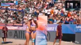 03:07:59Barber und Gernhardt haben bereits einen klaren Vorsprung, doch ein unnötiger Fehler gibt der gegnerischen Mannschaft eine Breakchance. Janne Uhl zeigt Frust über den Fehler, und der Aufschlag der Gegnerin ist so platziert, dass sie ihn nicht mehr verteidigen können. Eine technische Auszeit wird genutzt, um die Taktik neu zu besprechen und sich neu zu sortieren.