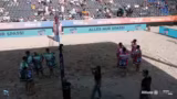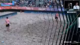 03:51:07Während des Spieles zwischen Carla Borger/Mary Schieder und Lea Kunst/Melanie Paul erleidet Mary Schieder eine Verletzung. Sie kann nach einer Landung kaum noch auf ihrem Bein stehen und muss das Spiel vorzeitig abbrechen. Medizinisches Personal ist im Einsatz und untersucht das Knie. Die Stimmung auf dem Court ist gesenkt, da eine ernste Verletzung die Partie beendet.