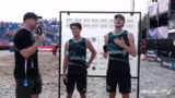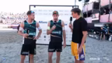 05:57:35Die Sargstetter-Brüder gewinnen den zweiten Satz und das Viertelfinale klar. In der siegreichen Pressekonferenz beschreiben sie ihre gute Vorbereitung und Taktik, die zu einem fast fehlerfreien Spiel führte. Sie äußern ihre Freude über den Einzug ins Halbfinale und sehen sich als Underdog gegen die topgesetzten Paul Henning und Louis Huist. Die Kommentatoren loben die beeindruckende Teamleistung und die souveräne Spielweise.