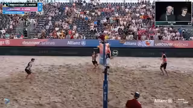 05:06:03Der Stream beginnt mit dem Live-Kommentar eines Beachvolleyballspiels. Kommentatoren diskutieren das Spielgeschehen, weisen auf Spieler wie Martin Stuber hin und versuchen, das Spiel für die Zuschauer zu analysieren und spannend zu gestalten. Besonderes Augenmerk liegt auf der Taktik und der Performance der Akteure auf dem Feld, wobei auch humoristische Kommentare die Atmosphäre auflockern. Der Fokus liegt auf dem Spielverlauf und den individuellen Stärken und Schwächen der Spieler.