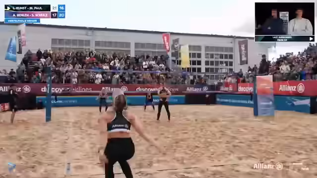 03:32:48Eine Umfrage zur Favoritenrolle im Halbfinale zwischen Behlen-Schulz und Kunst-Paul zeigte eine klare Tendenz. Die Kommentatoren analysierten die Spielzüge und äußerten Bedenken bezüglich des Windes und der Annahmeleistung. Sarah Schulz wurde für ihre starken Blocklösungen gelobt und Behlen-Schulz als deutsche Meister-Titelfavoriten für Timmendorf gehandelt.